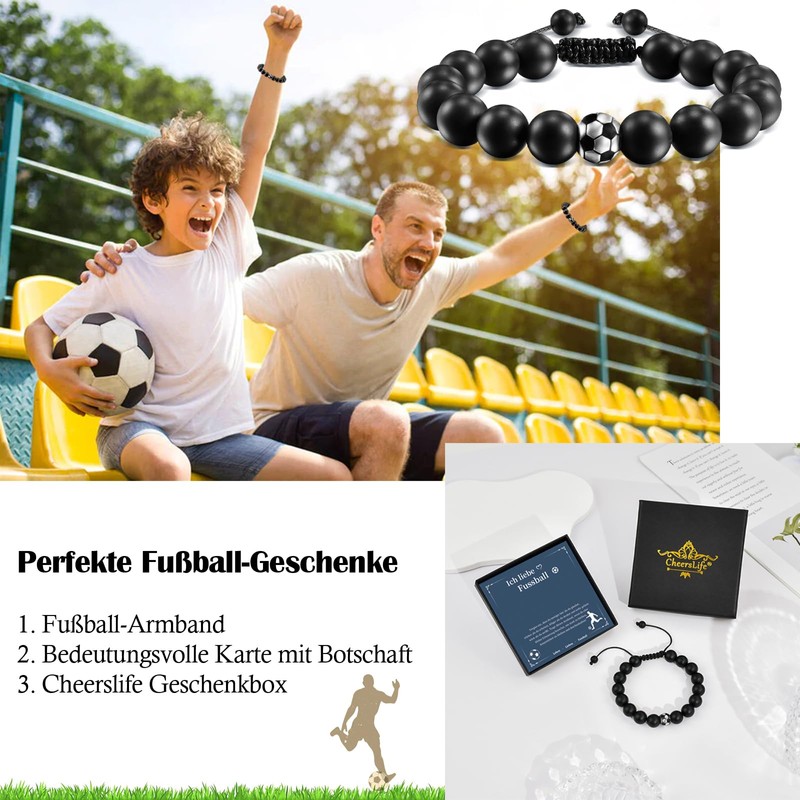 CheersLife Football Gifts Boys Football Bracelet Teenager Bracelet for My Son Football Gifts for Men Natural Stone 3D Football Bracelet Football Bracelet Boys Football Gifts for Boys, Bead