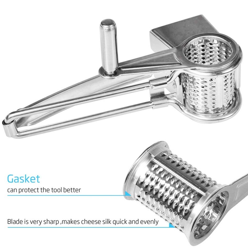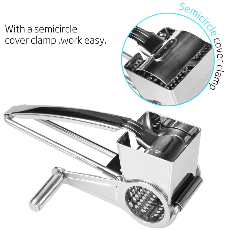 - Easy to use, simply place food in the feeder and turn the handle to grate or crush. With a few light strokes, the excess cheese should come loose and the perfect cheese for cooking is ready!