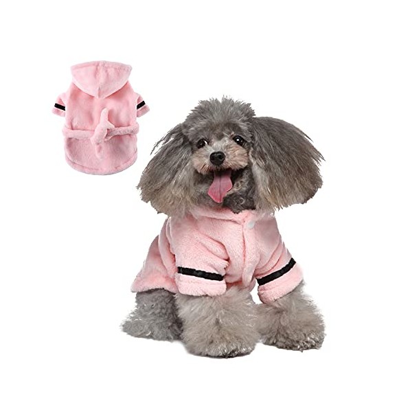 CheeseandU Dog Bathrobe for Small Dogs Winter Luxury Soft Flannel Thickened Hooded Pajamas Quick Drying and Super Absorbent Dog Bath Towel Soft Pet Nightwear for Puppy Small Dogs Cats,Pink