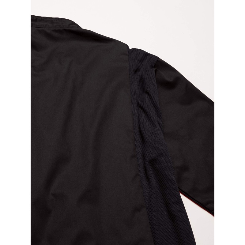 - Cloth-covered buttons on a double breasted front that alleviates exposure to heat