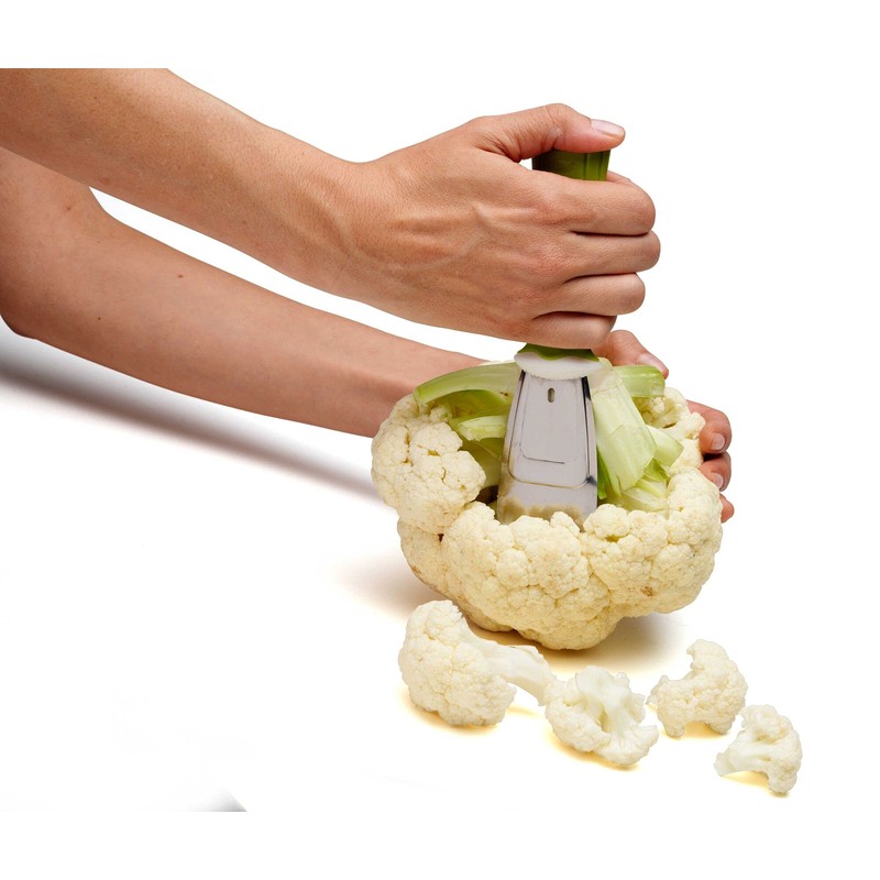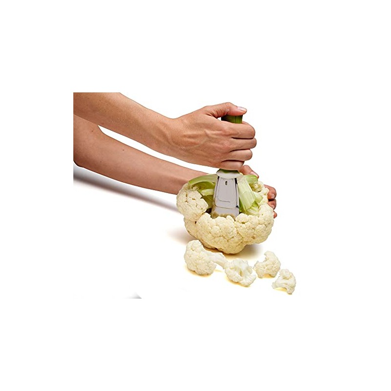 - HIGH QUALITY: Curved, stainless steel chopper fits under cauliflower head and allows you to hug the core of the cauliflower, popping florets off with ease.
