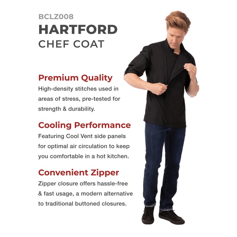 Chef Works Men's Hartford Chef Coat, Black, Small