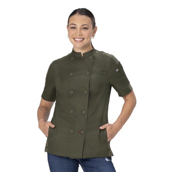 Chef Works Women's Mojave Short Sleeve Chef Coat, Olive, 2X-Large
