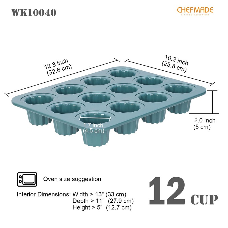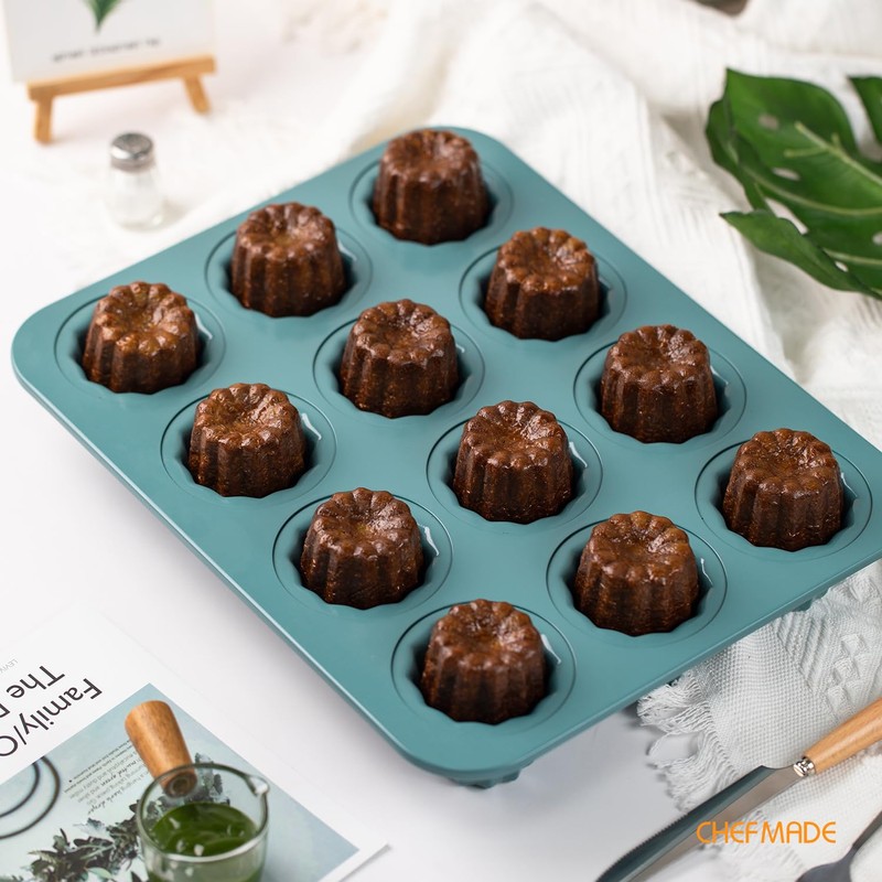 CHEFMADE Canele Form Non-Stick 12 Cavity Canele Muffin Bakeware Cupcake Pan for Oven Baking (Green)