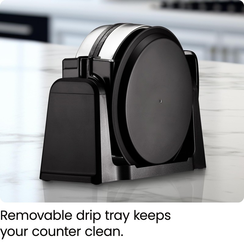 - EASY CLEAN AND SPACE SAVING: When finished, the drip tray removes easily for quick cleanup. Just wash with a mild dishwashing soap and rinse with Warm water. The appliance can be stored vertically to help save counter or cabinet space.