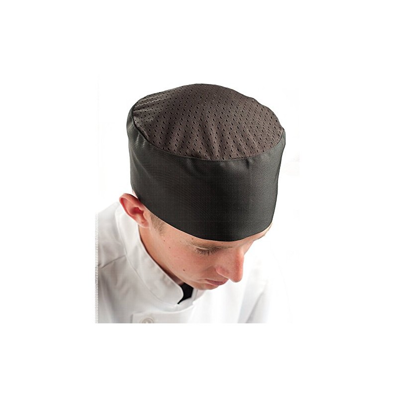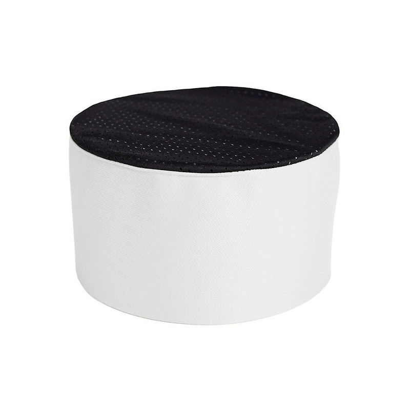 Chefs Mesh Top Skull Cap, White with Black Accent