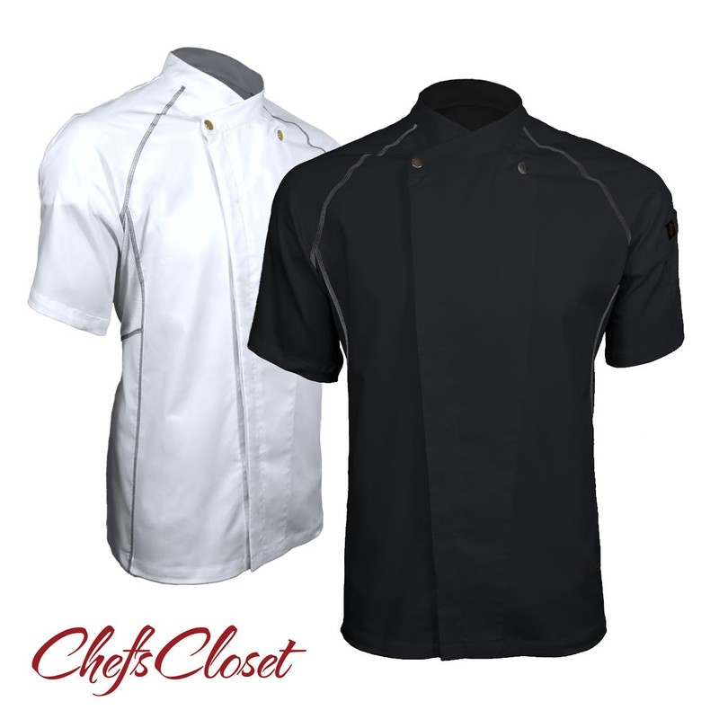 ChefsCloset Men's Clinton Snap Front Short Sleeve Chef Coat, Black Chefs Jack...