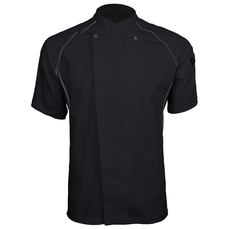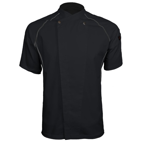 ChefsCloset Men's Clinton Snap Front Short Sleeve Chef Coat, Black Chefs Jacket for Men, Small
