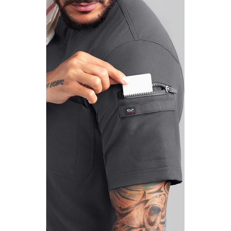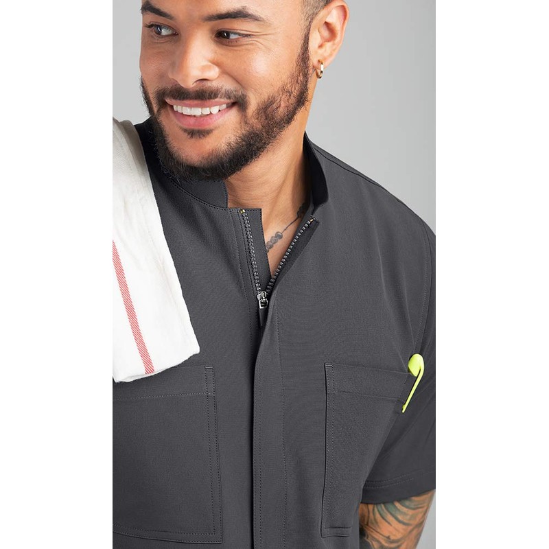 ChefUniforms.com Men's Performance Stretch Chef Coat With Zipper Closure (Pewter/Black, 3X)