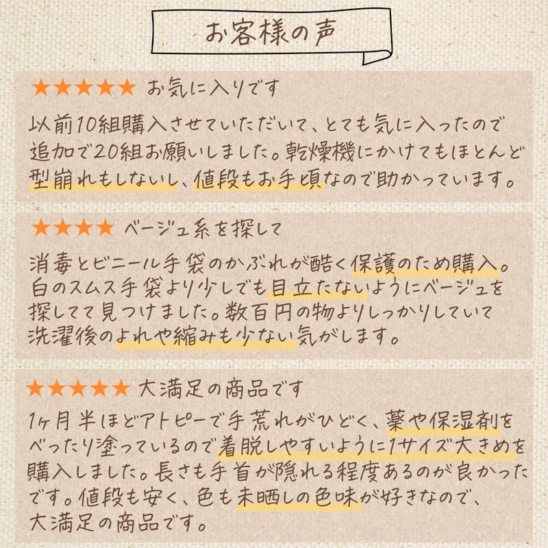 漂白してない未晒しの自然なコットンを使用した綿手袋セット
