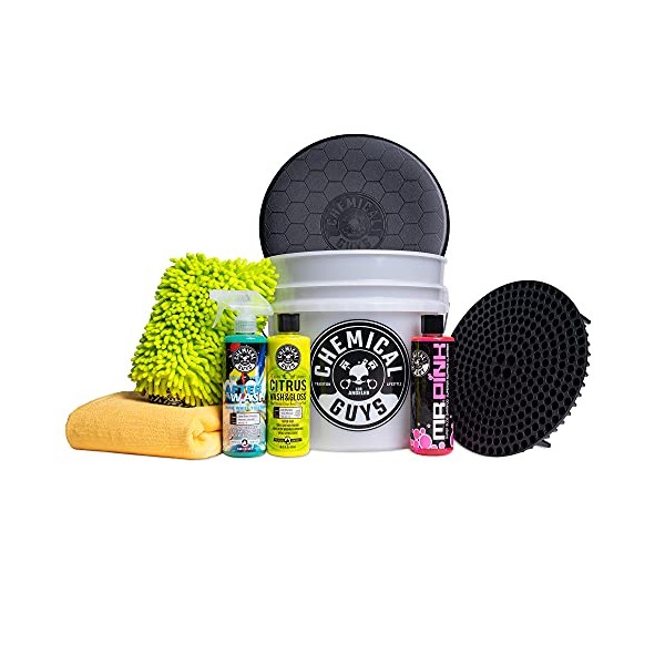 Chemical Guys HOL_128 Car Cleaning Kit, with Car Wash Soap, Car Wash Bucket and 16oz Car Care Cleaning (8 Items)