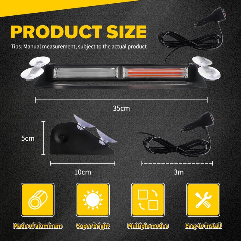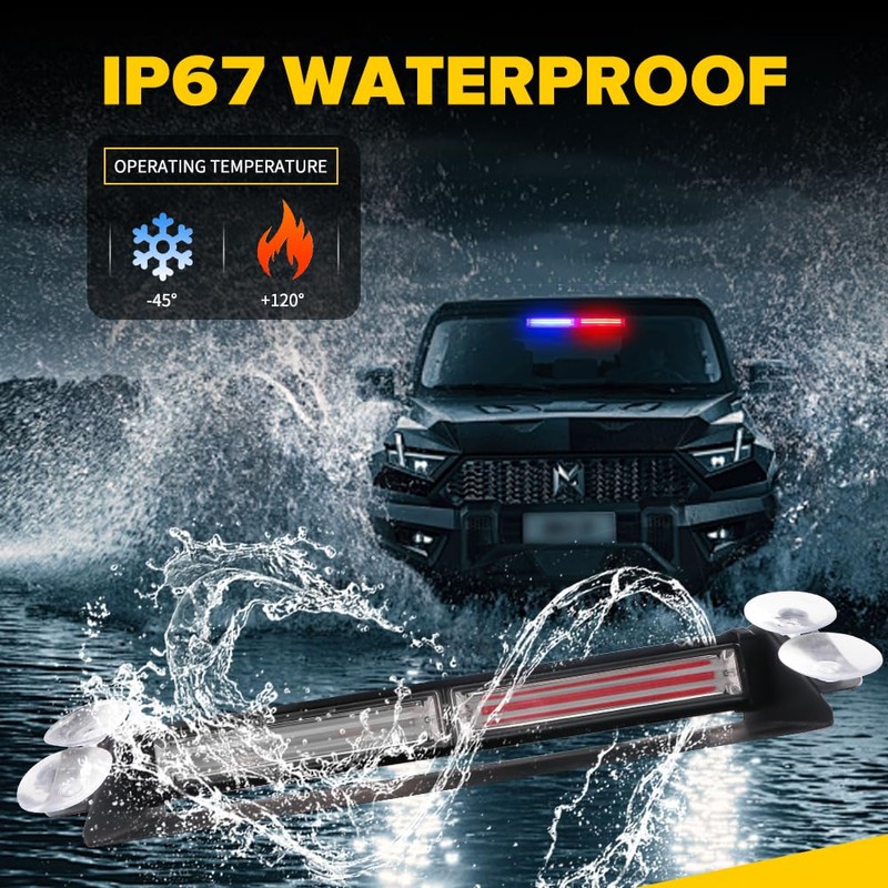 - Multi-purpose: windshield strobe lights are suitable for emergency vehicles, volunteer service vehicles, law enforcement vehicles, emergency vehicles, construction vehicles, safety warnings, snowplows, postal services, etc.