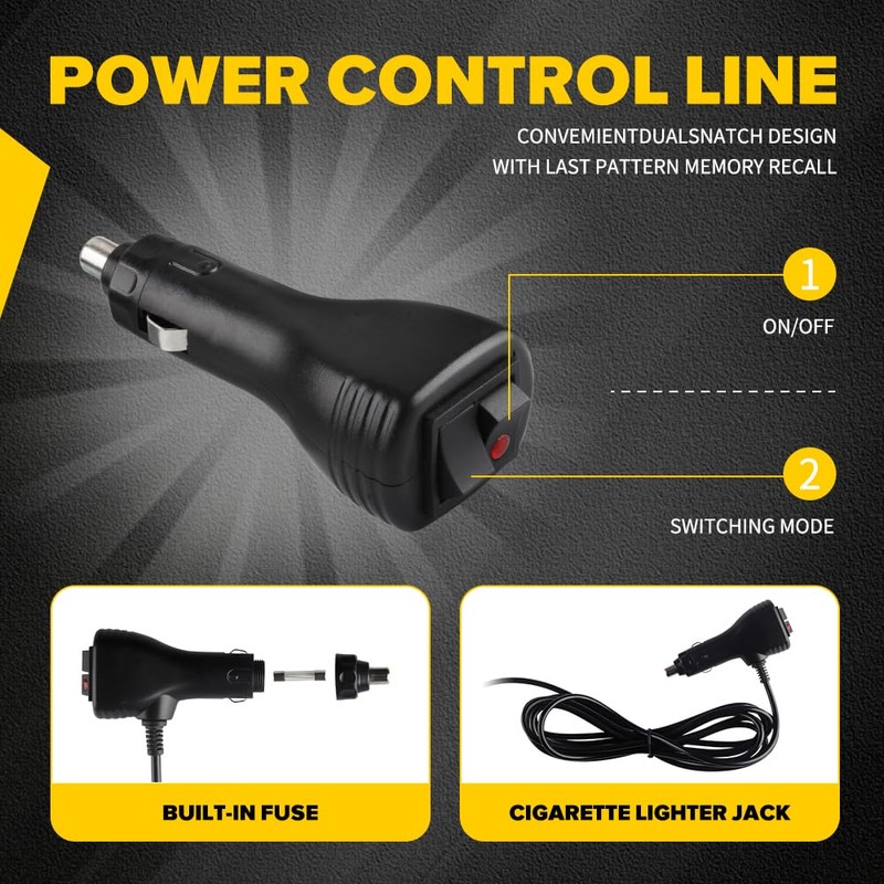 - Multiple flash modes: includes a variety of different flash mode selection and final mode memory recall. Double switch, remote control, easy operation. Red button switch button, black button switch flash mode, do not interfere with each other, you can choose the mode you like to decorate your vehicle.