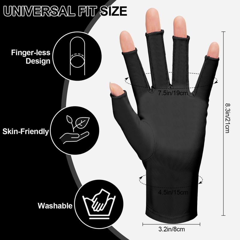 - Confiado por los entusiastas de las uñas: diseñados con cuidado y precisión, nuestros guantes UV son un accesorio imprescindible para todos los entusiastas de las uñas. ¡Invierte en protección de calidad para tus manos y mejora tu experiencia de manicura en gel hoy!