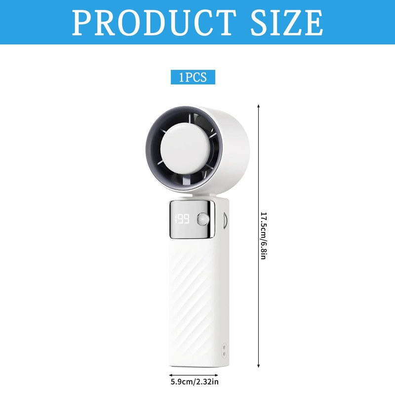 CHENBOOW Portable Turbo Hand Fan, Mini Fan, 9 m/s High Speed, Foldable USB Fan, 1-199 Speed, 105° Personal Rechargeable Fan, for Indoor and Outdoor Use