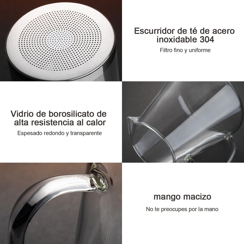 La tetera CHENGBAO tiene un mango anticaliente de vidrio de alto borosilicato. El mango ergonómico se sostiene cómodas en la palma de la mano. La función resistente al calor hace que el mango sea siempre fácil de agarrar, incluso en agua hirviente. Infusor de alta calidad infusor de acero inoxidable no se oxida con el tiempo. Su superficie lisa protege sus manos.
