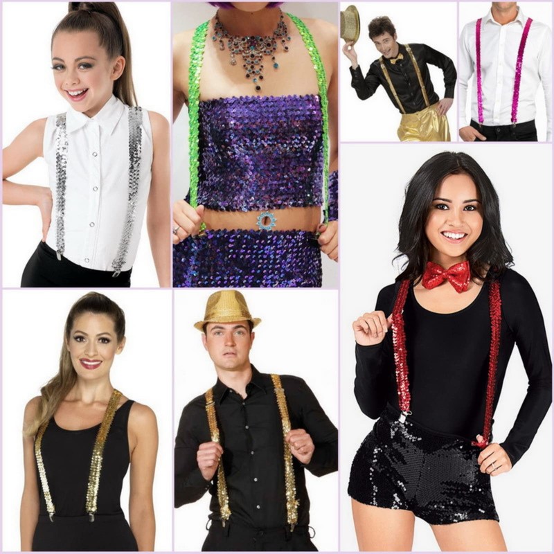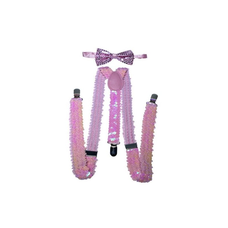 CHENGZI Braces for Men and Women, Elastic Y Back Braces for Adults, Strong Clips, Adjustable, Elastic, with Bow Tie, Pk Sequins, One Size, Pk Sequins