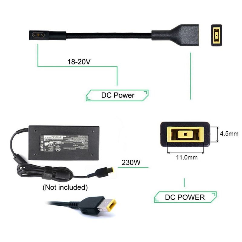 ChenYang CY - Cable de entrada rectangular de 11.04.5 mm a conector de alimentación de 3 pines, compatible con laptop Blade Pro 17 y Blade 15, compatible con adaptador de carga de 230 W/160 W