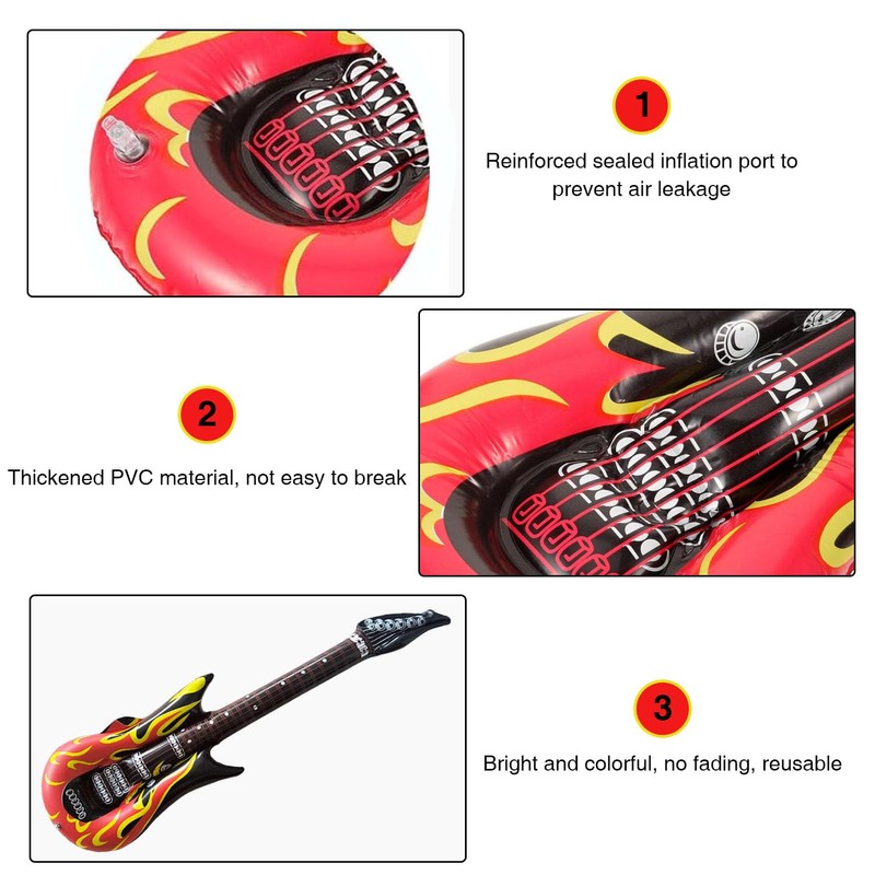 - Perfect fancy dress guitar decoration: complete your fancy dress costume with these inflatable guitars and attract everyone's attention. They are safe for children and let the imagination bloom.