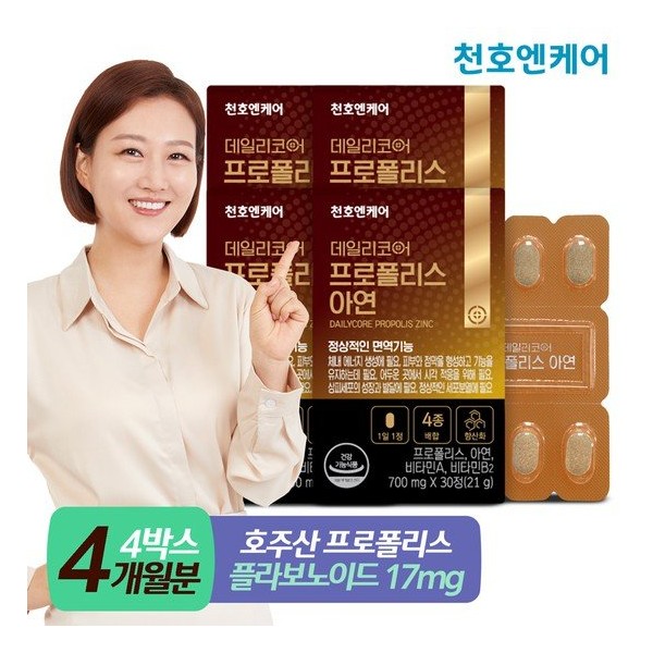 Cheonho NCare Daily Core Propolis Zinc 30 tablets 4 boxes / 천호엔케어 데일리코어 프로폴리스 아연 30정 4박스