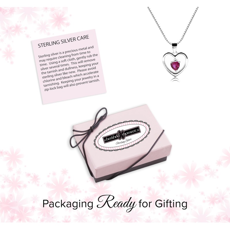 - PREMIUM QUALITY – Designed with .925 sterling silver and features a "Dancing Heart" CZ February Simulated Birthstone on a high-quality sterling silver chain with durable lobster clasp (charm 12mm). This makes a timeless keepsake she will treasure forever.