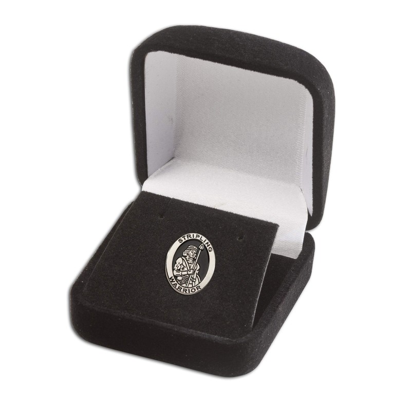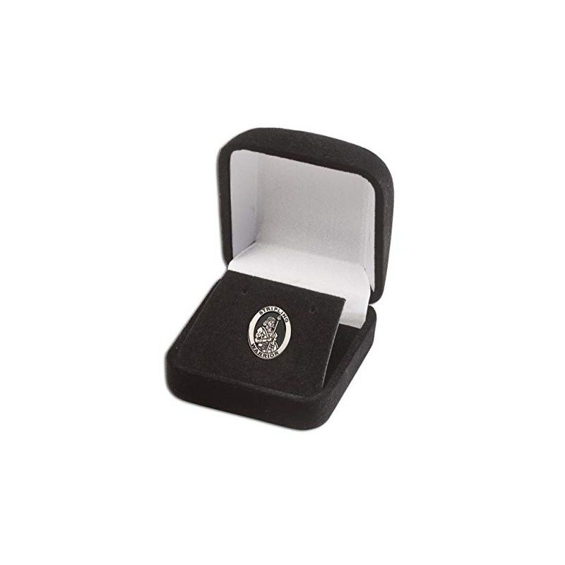 Beautiful Stripling Warrior tie pin featured in black in silver tone. The pin comes in a beautiful black velvet gift box.