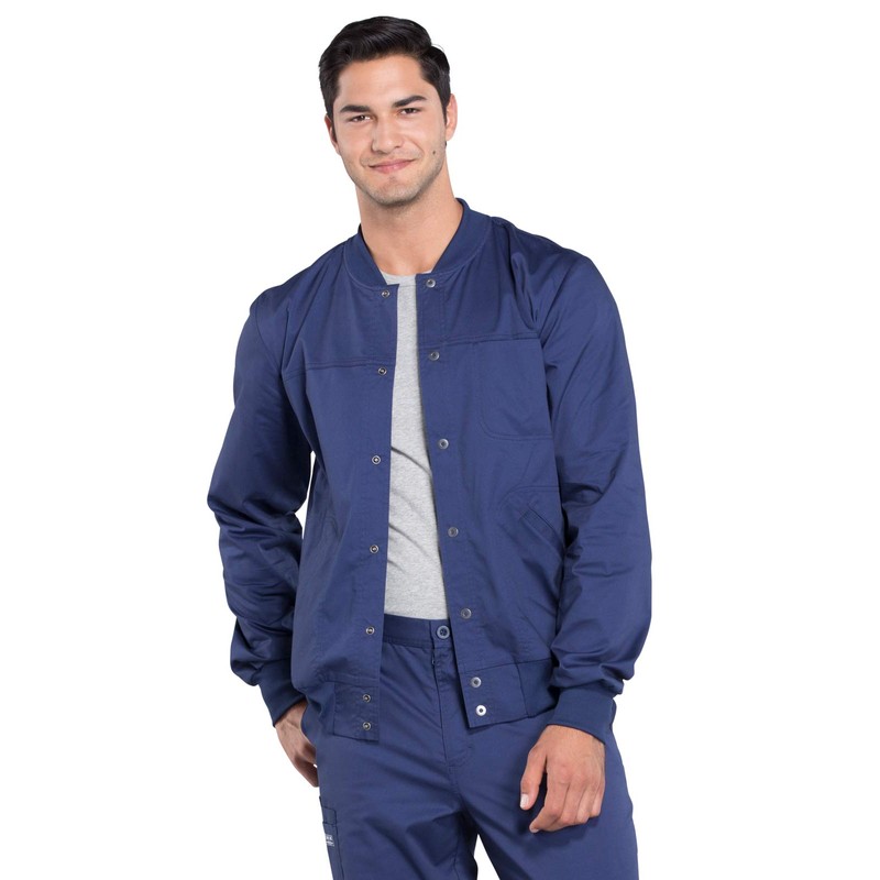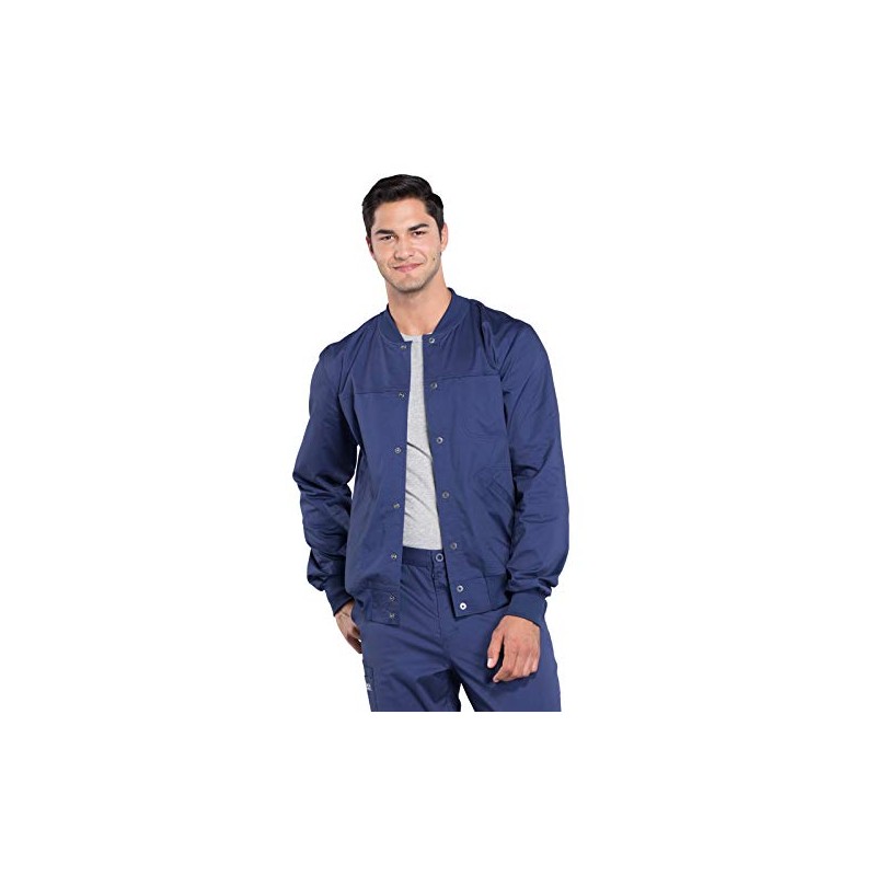 Cherokee Men Scrubs Jacket Workwear Core Stretch Snap Front Plus Size WW330, 4XL, Navy