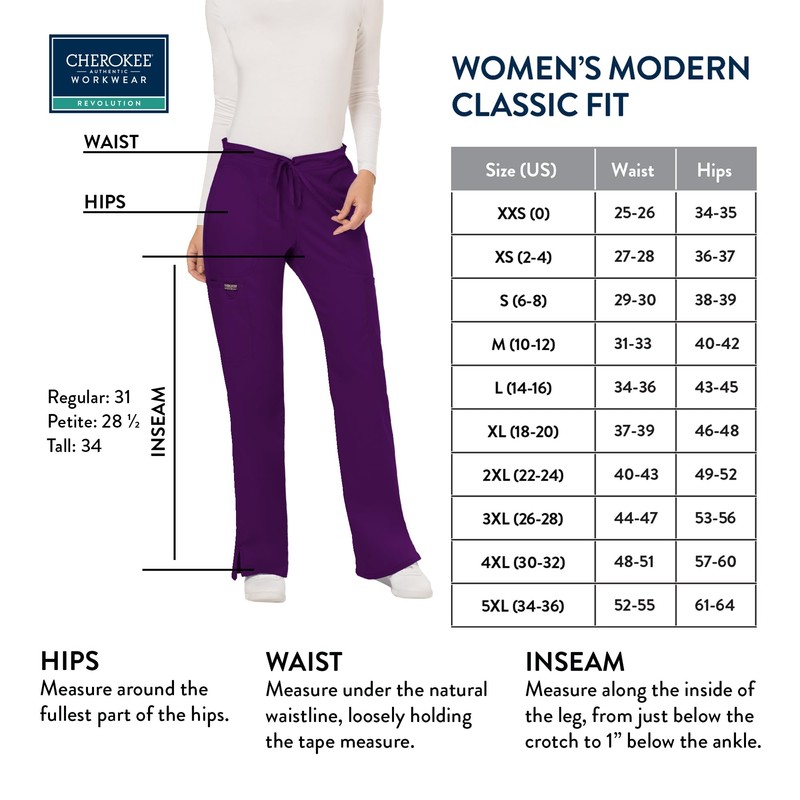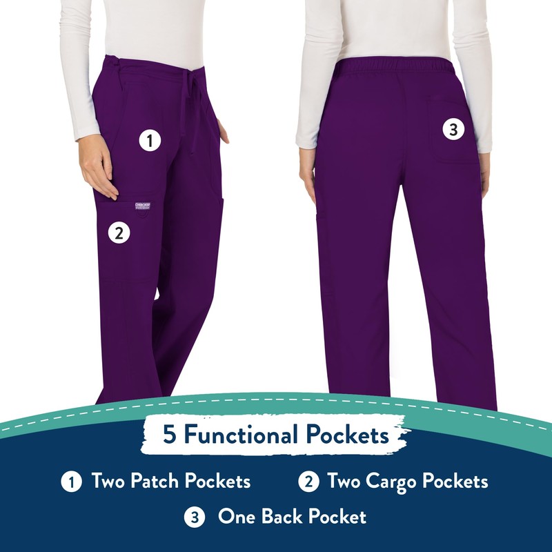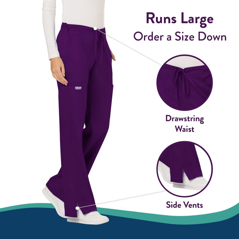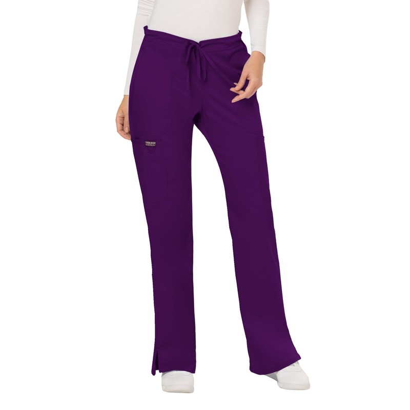 Cherokee Women's Mid Rise Moderate Flare Drawstring Pant, Eggplant, Medium