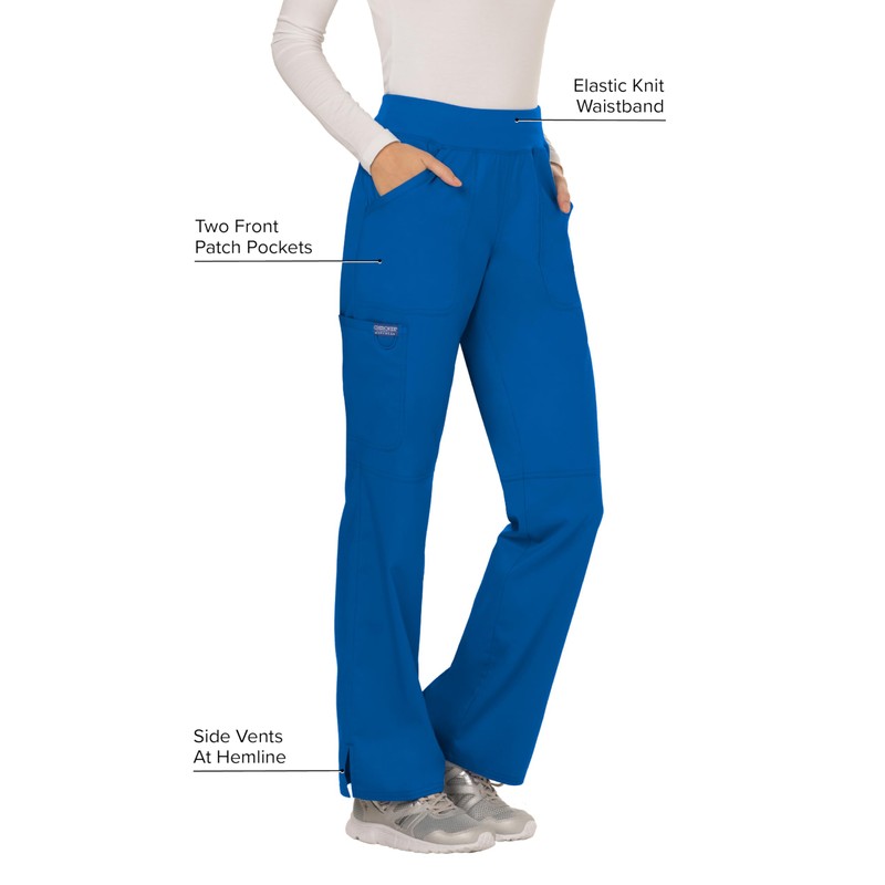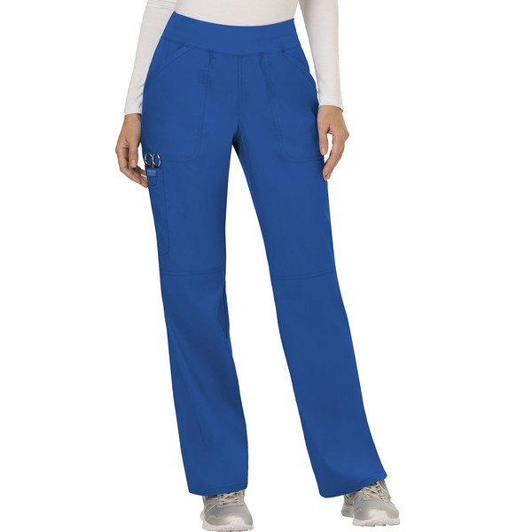 Cherokee Women's Mid Rise Straight Leg Pull-on Pant, Large Petite, Royal