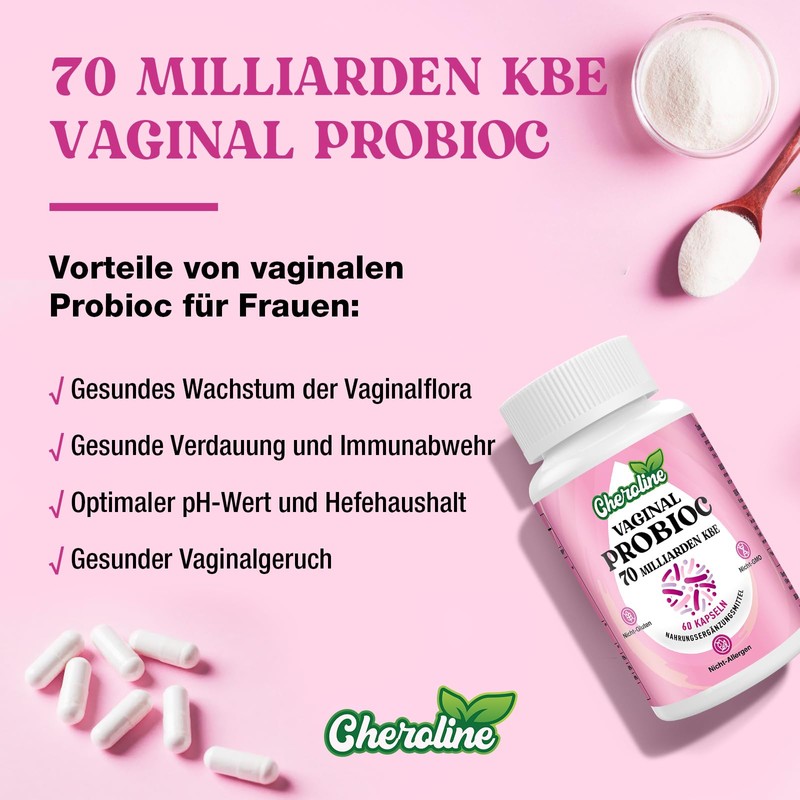 - NATURAL AND SAFE The Cheroline Vaginal Probioc Supplement has been carefully designed to meet the specific needs of the female body. Our advanced formula is 100% pure, natural, vegan and GMO free. It is easy to swallow, has no unpleasant taste and is suitable for different nutritional preferences and needs. Each bottle contains 60 capsules. For best results, simply take one capsule daily.