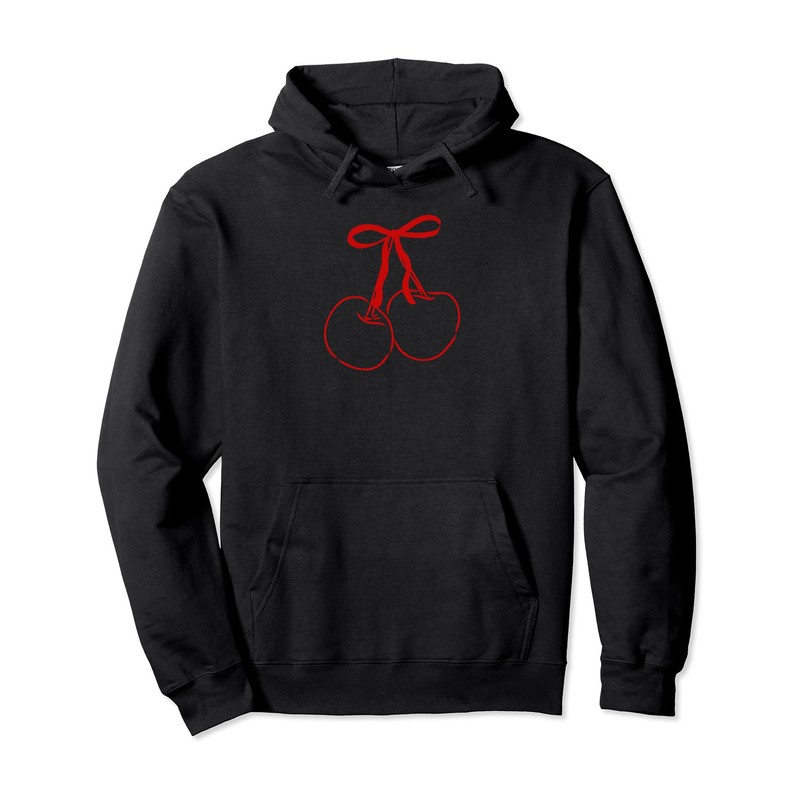 Cherries Bow Ribbon Knot Red Trendy Cute Cherry Pullover Hoodie