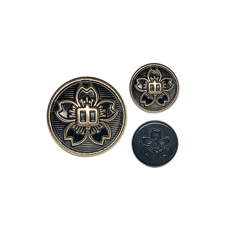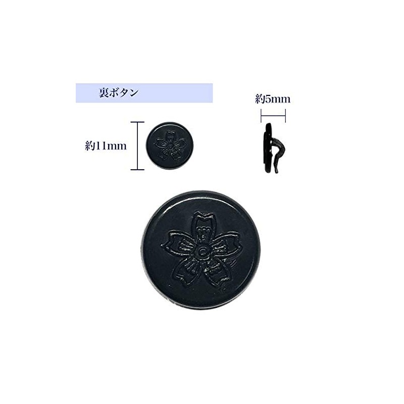 Cherry Blossom Button Set (5 Large, 4 Small, 5 Back) School Run, Black Collar, Junior High School Uniform