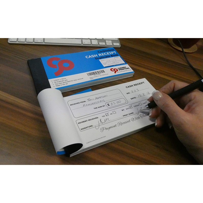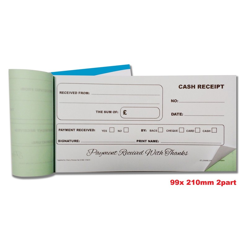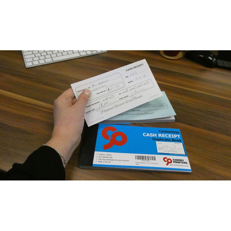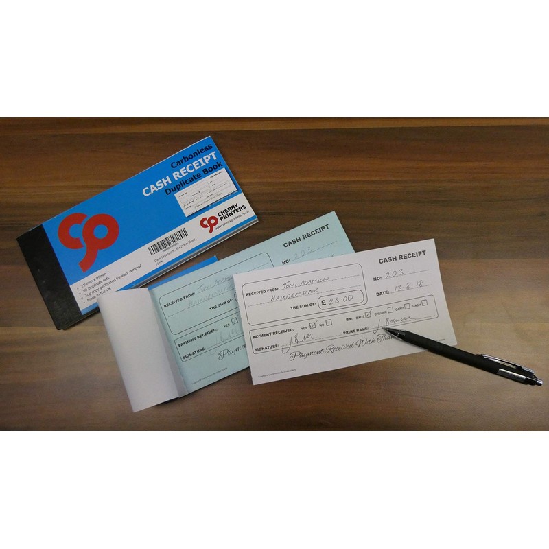 - Cash receipt duplicate book for issuing a receipt to customers, whilst keeping a duplicate copy on the book. With the added information of how the payment has been made for convenience.