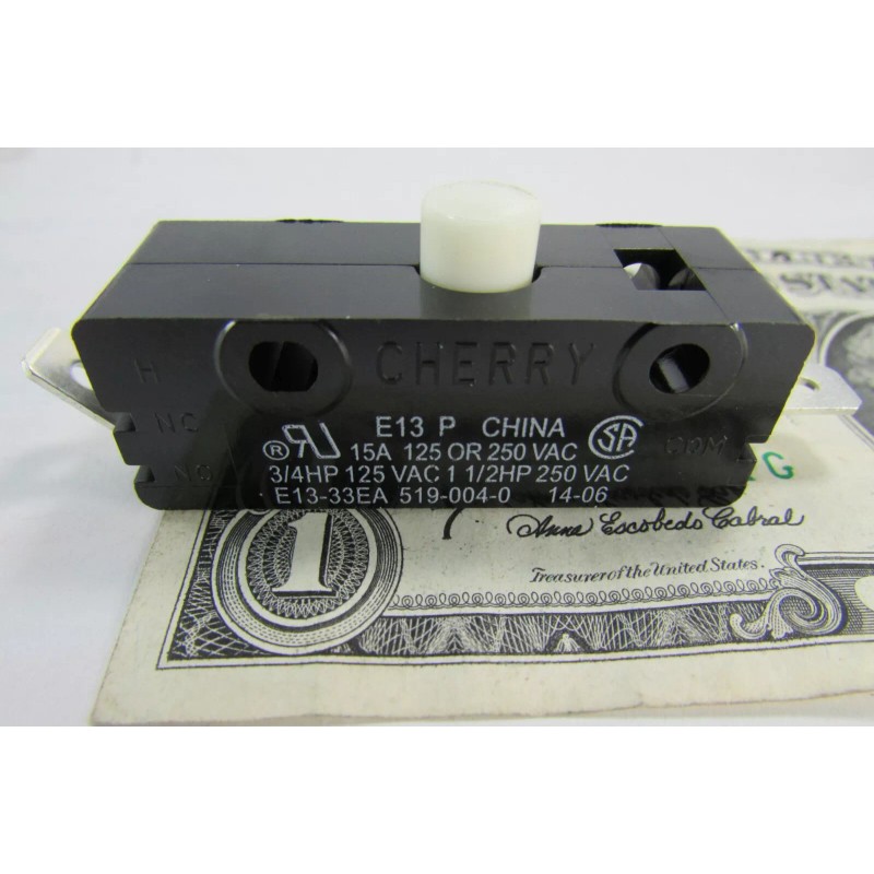 New Cherry 15 Amp at 125 Volt / 250 Volt, Normally Open, Momentary Pushbutton Snap Action SPDT MicroSwitches, Part Number E13-33EA, or E1333EA, or 0E1333EA. Each bid quantity is for a Lot of Two (2) Switches. You may bid / buy any number of lots, up to the total quantity available above.