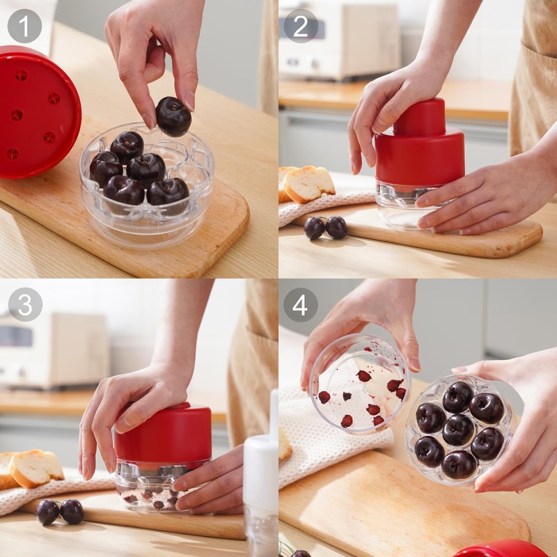 - Easy to Use: The Cherry Pitter is a user-friendly operation designed for ease of use. The cherry pitter tool is equipped with a comfortable grip handle that requires minimal hand strength. Easy press down . You can pit 7 cherries at a time without wasting the pulp, saving you time and energy. Let your family safely enjoy delicious cherries. Making it suitable for all ages.