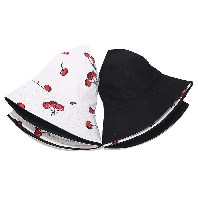 Cherry White Bucket Hat Beach Sun Hat Fishing Hat for Women Men, Outdoor Travel Reversible Double Side Wear Fisherman Hat