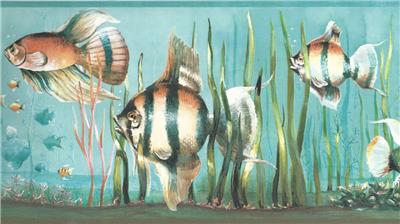 Wallpaper Border Under The Sea Tropical Fish Blue Green Orange Black