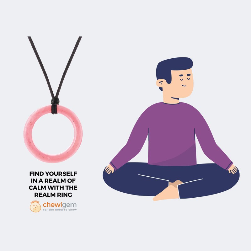 - Chewigem Realm Ring - Pink Sparkle | Strong, Discreet, Chewable Necklace & Sensory Aid for Anxiety Reduction, Improved Focus & Calming Sensory Processing Difficulties | Ideal for Autism, ADHD, SPD & Oral Motor Needs.