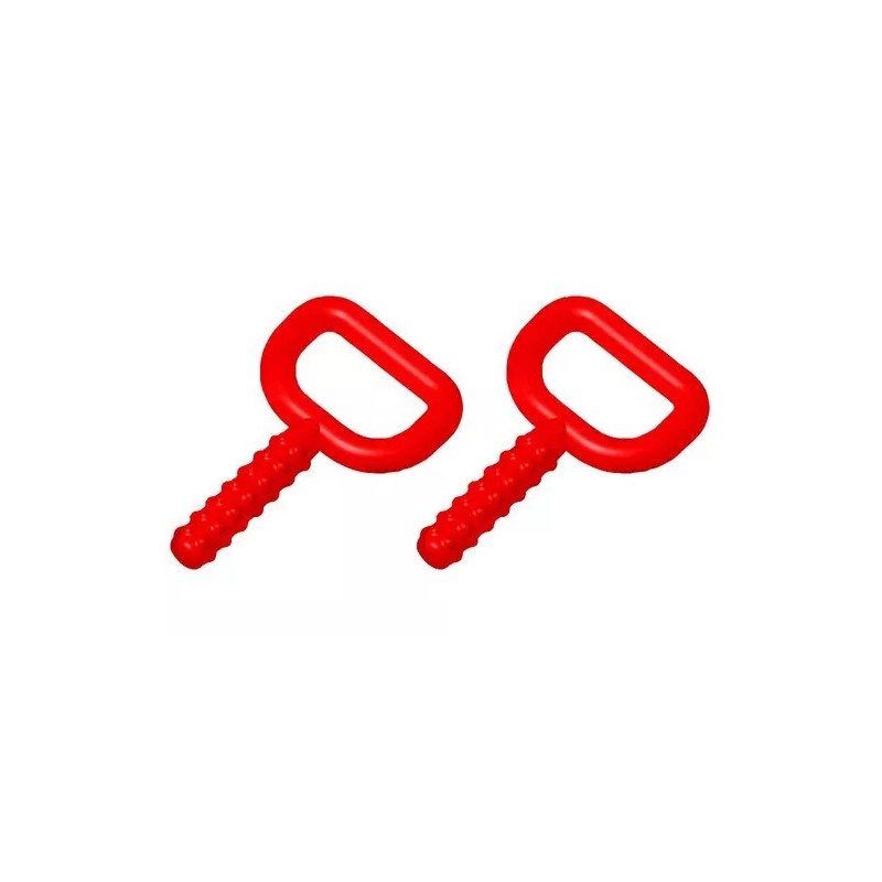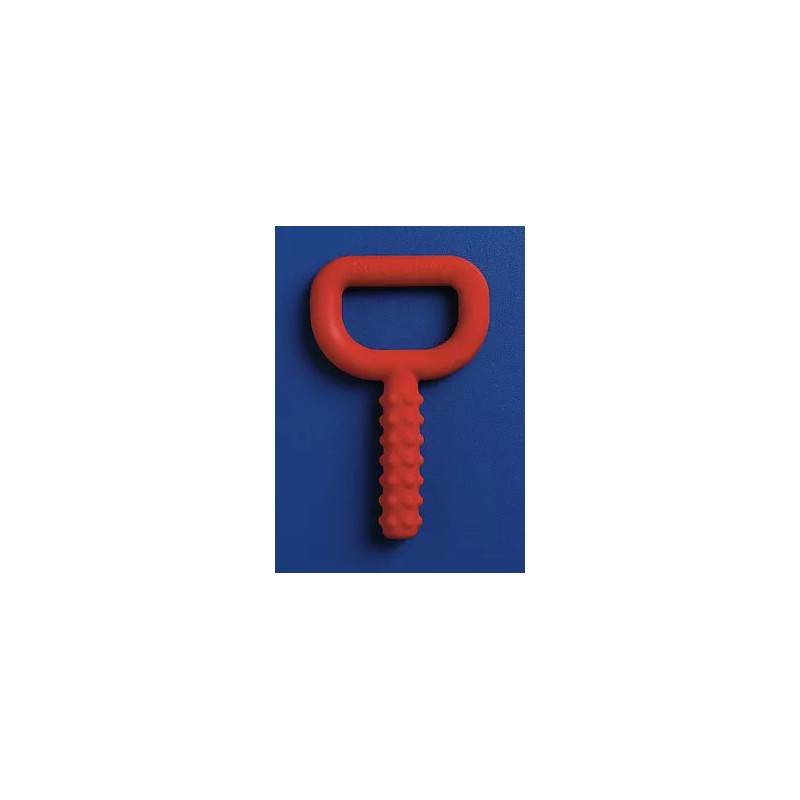 The Red Super Chew offers a solid yet knobby surface for practicing biting and chewing skills. Little bumps surround the entire bitable stem offering lots of fun tactile input for the mouth. The closed-loop handle is easily grasped by little fingers. The Red Super Chew features a stem size of 9/16″ outside diameter.