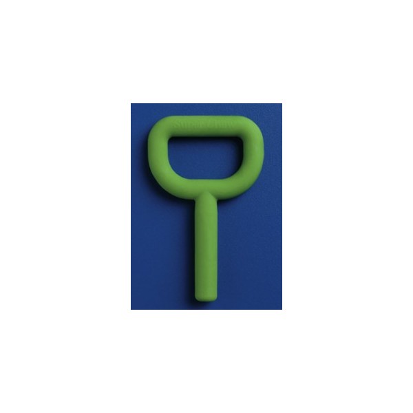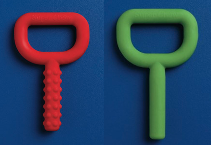 ​The Green Super Chew offers a solid and smooth surface for practicing biting and chewing skills. If a child demonstrates oral defensiveness or sensitivity to touch and textures, the smooth bitable stem of the green Super Chew may be more readily accepted than the Red Super Chew. The closed-loop handle is easily grasped by little fingers. The Green Super Chew features a biteable stem size of 1/2″ outside diameter.