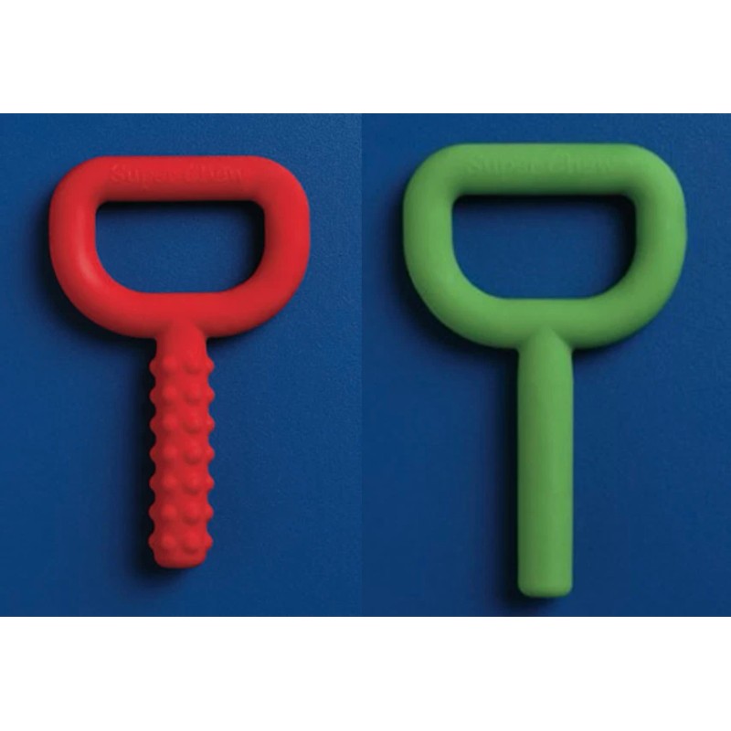 • The Red Super Chew offers a solid yet knobby surface for practicing biting and chewing skills