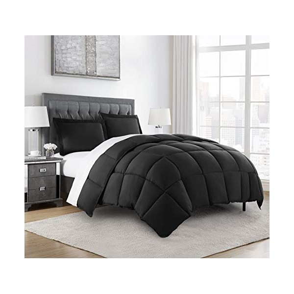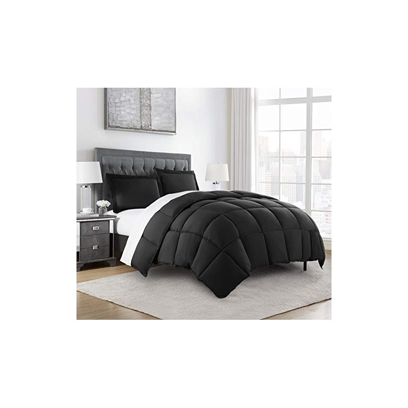 Chezmoi Collection 3-Piece Down Alternative Comforter Set (Queen, Black)