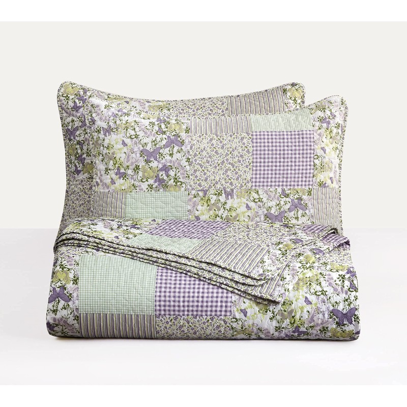 - Lively botanical garden butterfly printed patchwork made of various plaid stripe designs and floral patterns with a reversible option of the flower garden on the underside. Lightweight and durable stone-washed microfiber, providing comfort for year-round use.