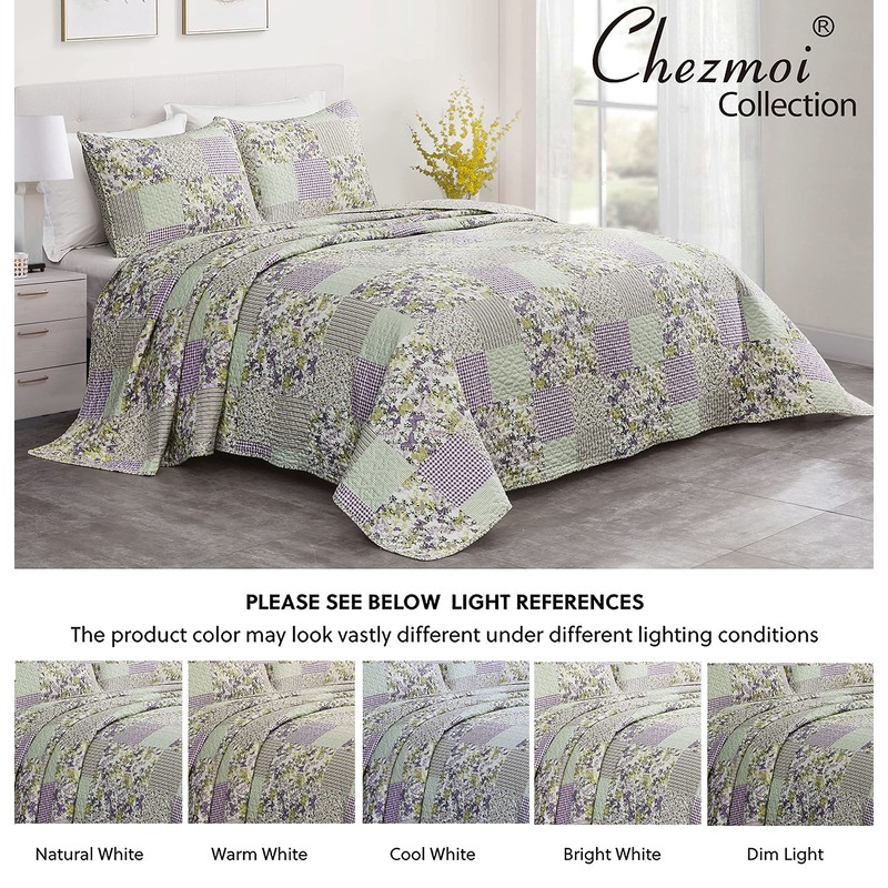 - 3-Piece Printed Patchwork Quilt Set includes: 1 Quilt, 2 Shams