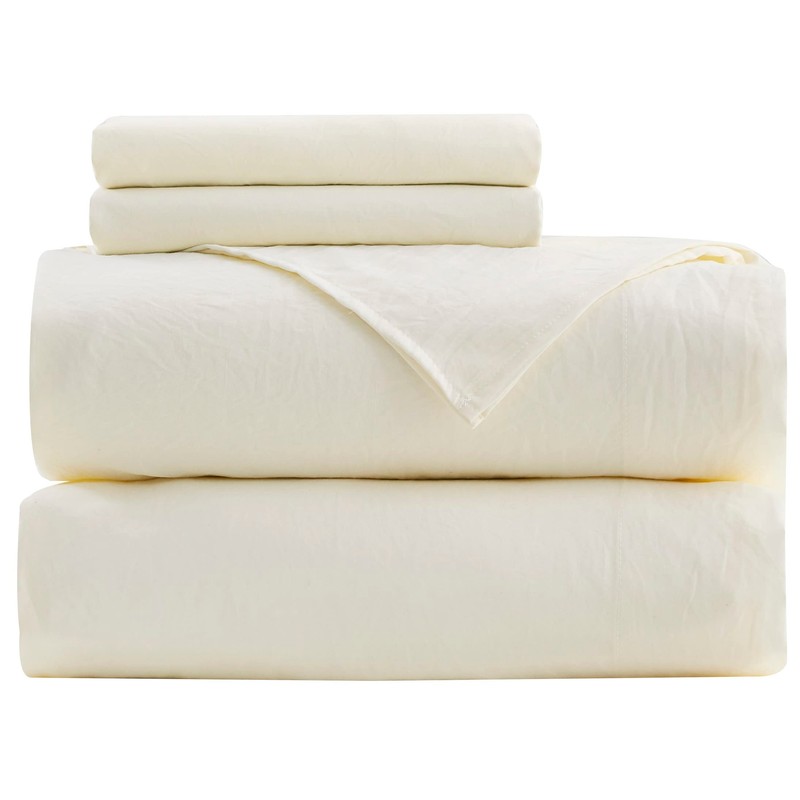 - 4-Piece Washed Microfiber Sheet Set Includes: 1 Flat Sheet, 1 Fitted Sheet, 2 Pillowcases