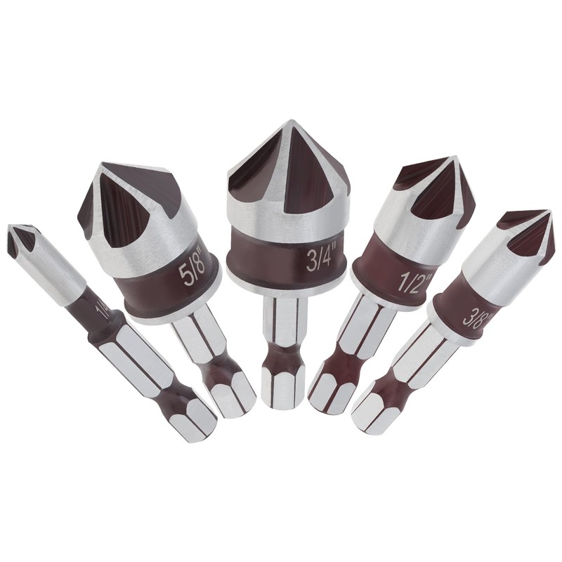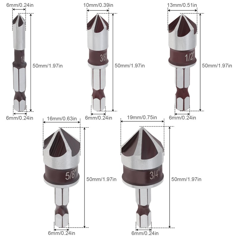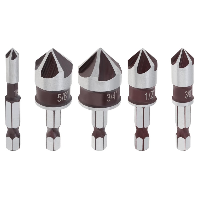 - 1/4-Inch hex shank, precision grinding 82-degree countersink drill bit, with 5 most popular size.