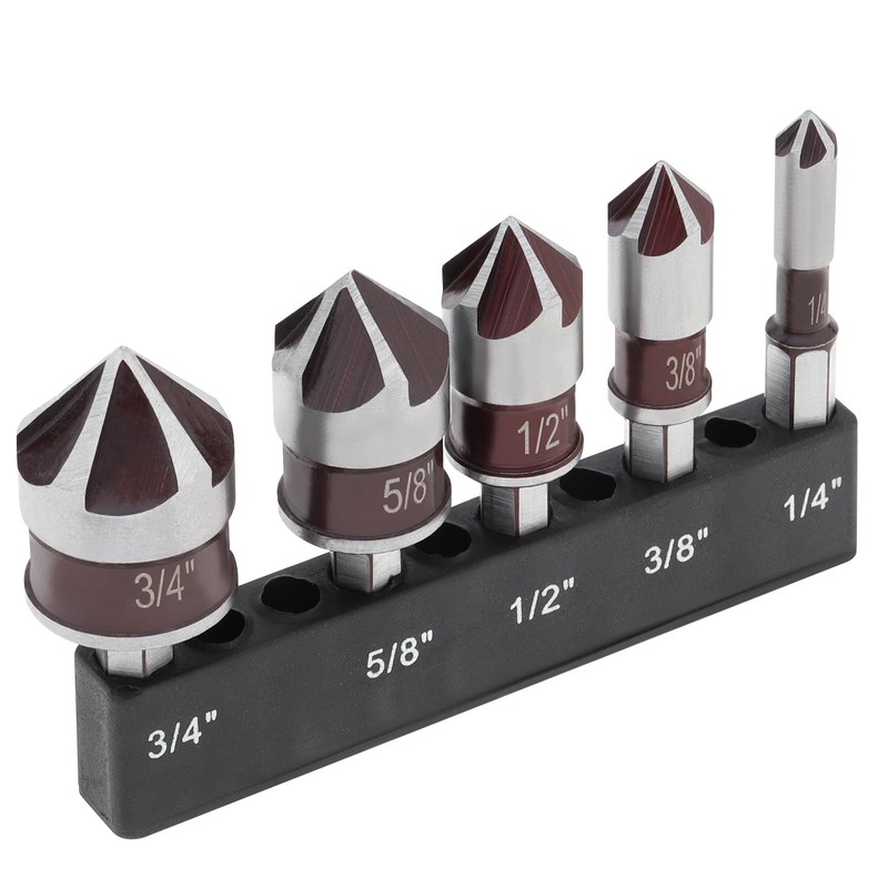 ChgImposs 5PCS Countersink Drill Bit Set, High Speed Steel Countersink Bits, 82 Degree Countersunk Bits, 1/4-Inch Hex Shank Countersunk Bit Set with Bit Holder
