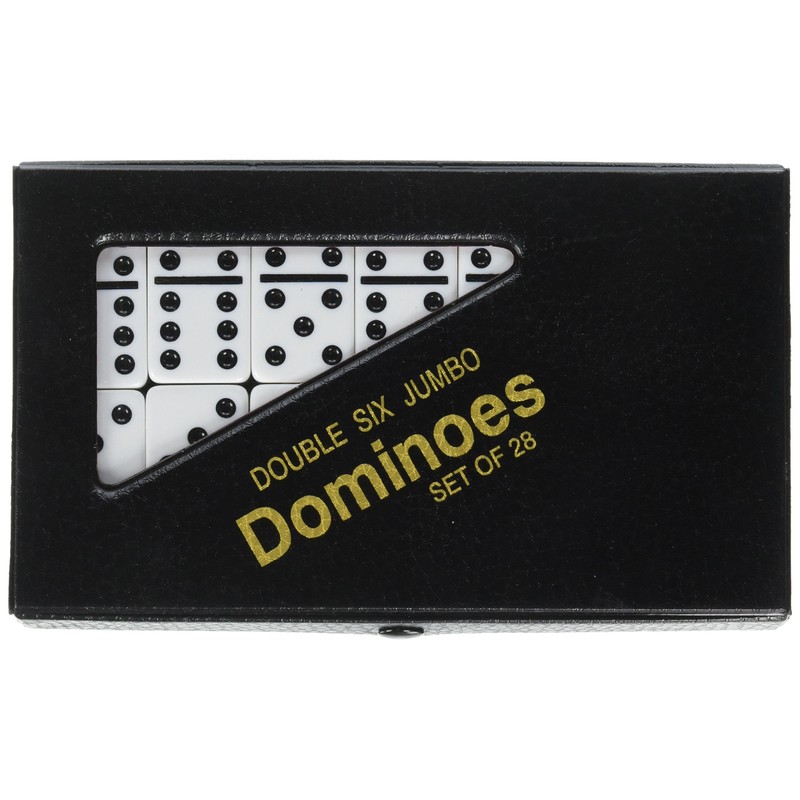 - Double 6 jumbo size white color dominoes in vinyl case