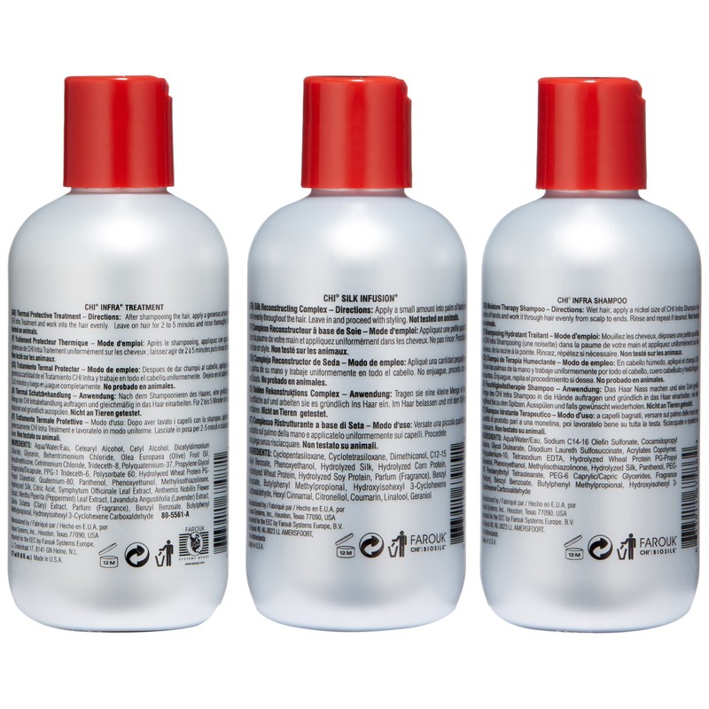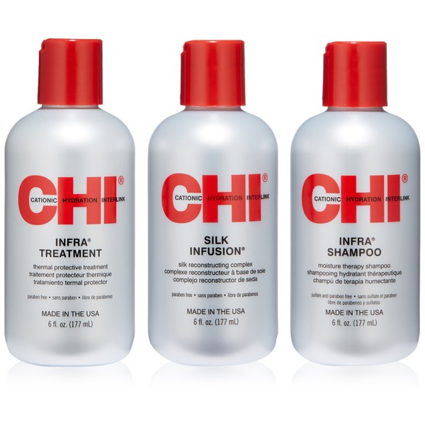 The first hair care line to use the cationic Hydration Interlink technology, which strengthens and protects the hair from the daily use of thermal tools. CHI Infra products contain positively charged silk molecules that intertwine with the natural structure of hair to develop strength and endurance, while improving moisture and shine.