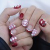 Chic Chit Press on Nails Saga: Love Actually, Handmade Square short, red wool...